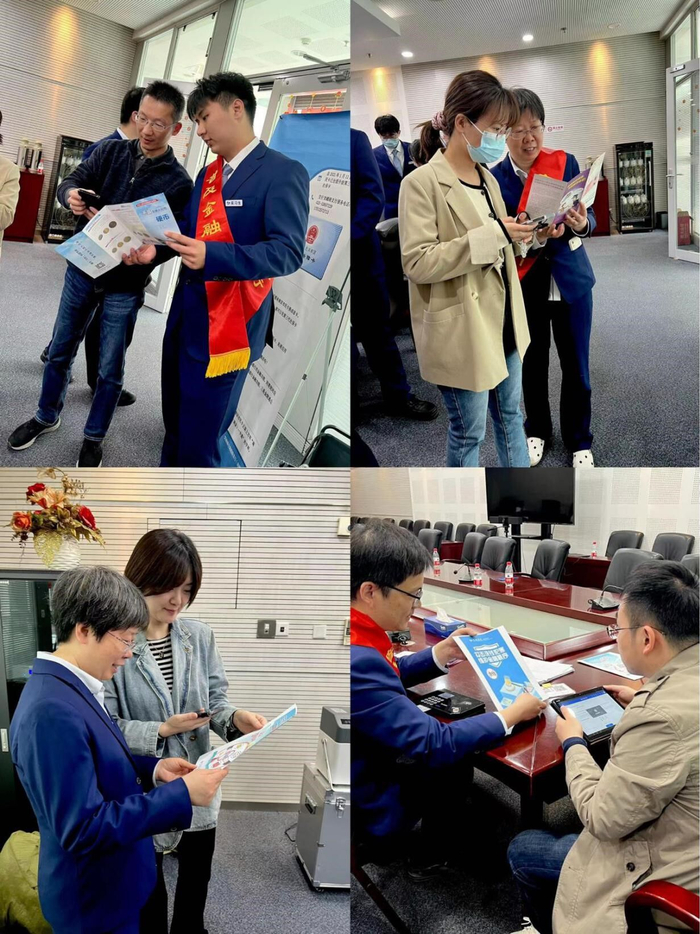 2023年4月12日,龙蟠路支行走进江苏省送变电有限公司,为企业工作人员进行一系列金融知识宣传。