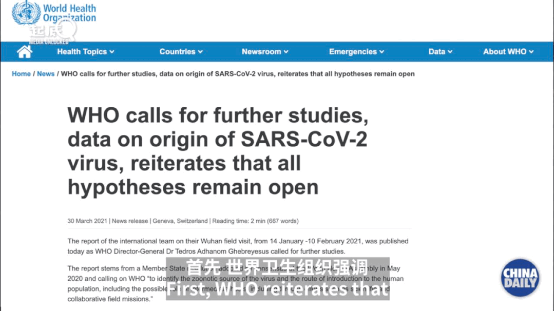 在街头采访游客时,画外音将来自武汉的游客描述为“来自疫情源头的游客”。试图将武汉与疫情起源联系起来并非是什么无伤大雅的描述,而是蓄意捏造,营造出中国的负面形象。