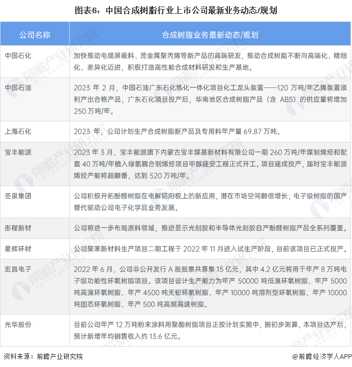 从企业最新业务动态或规划来看,各企业积极开发建设合成树脂生产项目,增强企业合成树脂产品的供给能力。如中国石油的广东石化项目,项目投产后可为企业增加250万吨/年的合成树脂产品产量;宏昌电子在2022年6月非公开发行了A股股票,使用4.2亿元的募集资金投资年产8万吨的电子级功能性环氧树脂项目。