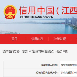 | 行政处罚决定书文号: | 庐山交超罚[2023]0050号 |