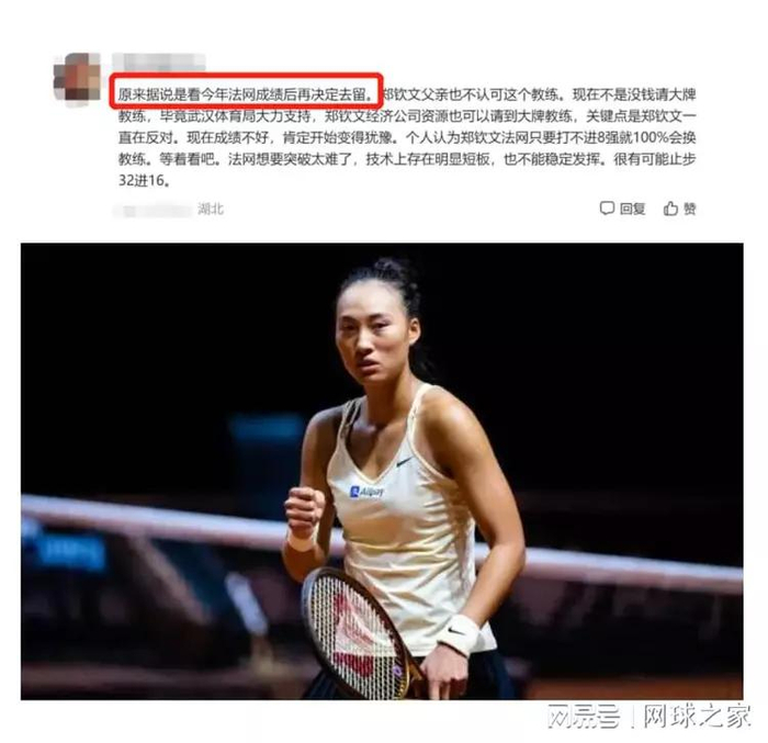 同时,更是大胆猜测,如果今年法网郑钦文进不了八强的话,百分百会换教练,“等着看吧。”