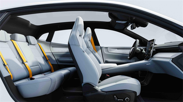 极星4标配的超长全景玻璃天幕可选装EC光感功能,可根据不同的需求在透明与不透明间随意切换。后挡风玻璃采用了进化设计,使玻璃天幕可以一直延伸至后排乘员的头部之后,营造出通透的车内空间。同时,极星4还为后排乘员配备了多媒体和空调控制辅助屏,方便其进行操控。此外,极星4应用了诸多新的内饰材料,包括由100%回收PET定制的Tailored Knit编织面料、MicroTech生物性环保面料及经过动物福利认证的Nappa真皮面料。