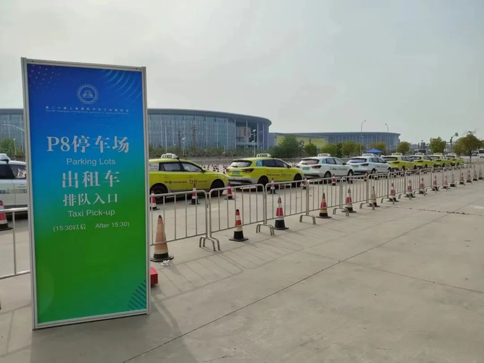 需要搭乘出租车离场的观众,同样也可以通过东大厅二层连廊,步行至P8停车场排队搭乘出租车离场。
