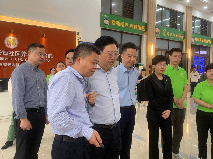 4月18日,重庆市九龙坡区委书记李春奎调研石桥铺街道张平社区养老服务中心和重庆市慈善总会助浴快车项目。