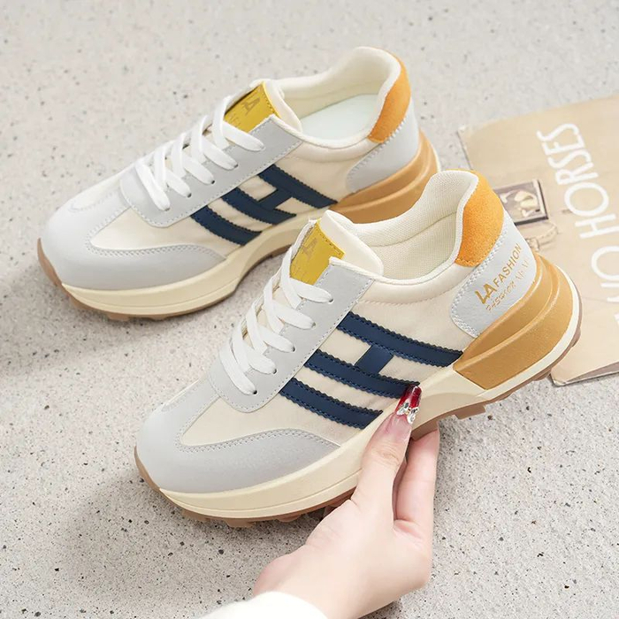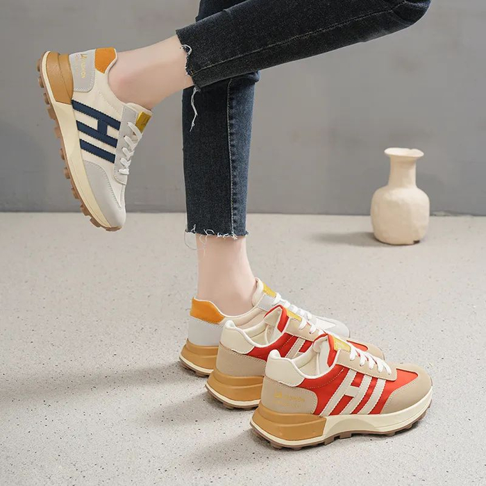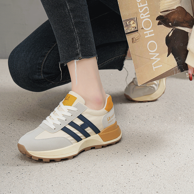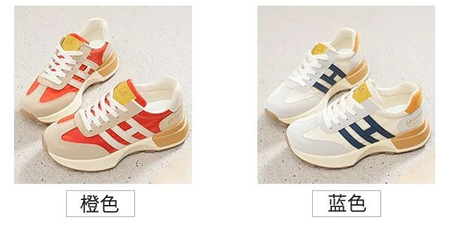 鞋面不同色系不同材质的撞色拼接,侧面的设计点缀,打破单调和沉闷,青春活力。