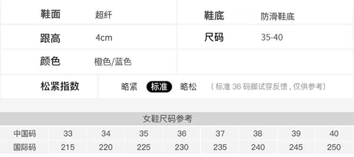 尺码35-40,码数正码(脚大脚背高建议拍大一码)!