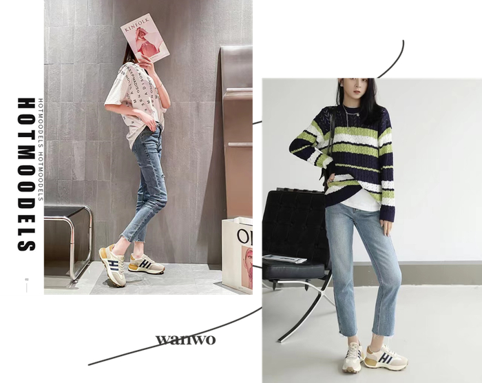 低帮+加厚鞋底在兼顾脚感的同时还能拉长腿部线条,对于小个子女生来说绝对是一件显高利器。