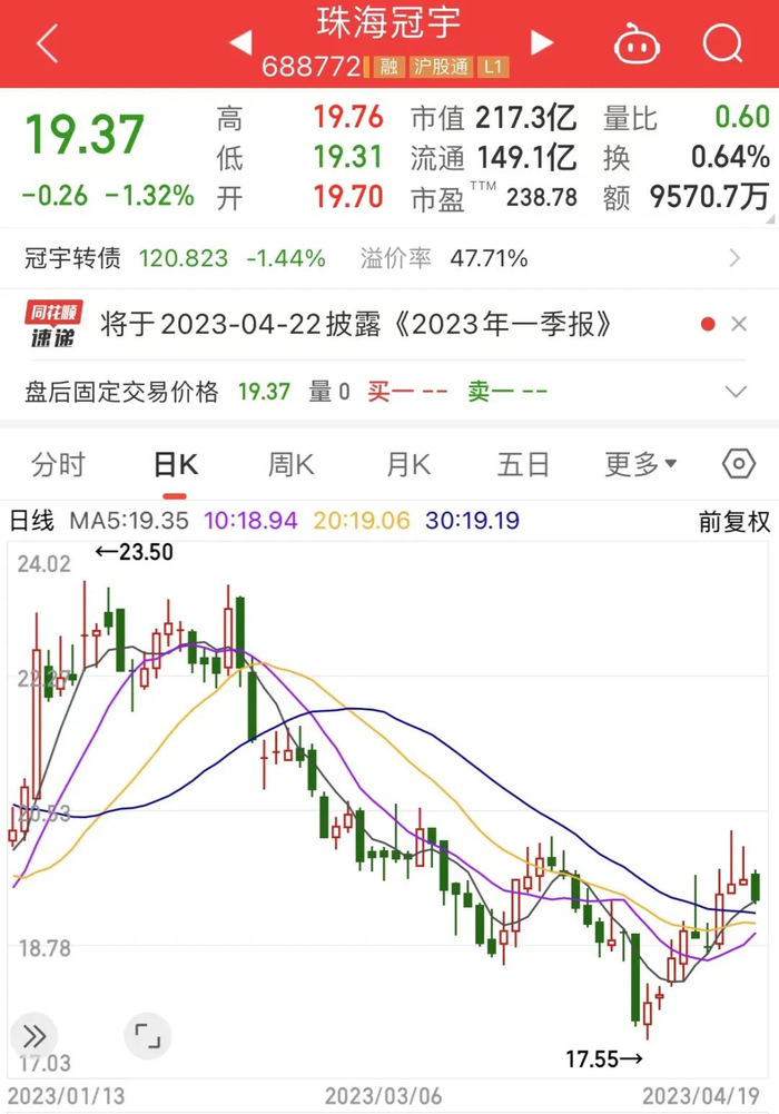 4月以来股价创新低的个股中,A股市值超百亿元的有9股,珠海冠宇市值最高,目前A股市值达到217.3亿元。公司主业为消费类锂电池,上市之初公司股价一度涨至64.42元/股,A股市值最高时超过700亿元。上市当年,公司净利润增速15.76%,较上个年度增速大幅下滑。2022年公司净利润降至亿元以下,同比下滑90.38%。