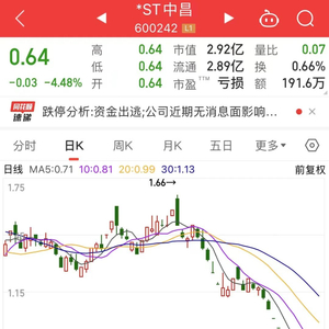 4月19日,*ST中昌股价再次跌停,至此已录得连续11个跌停板,是近期连续跌停次数最多的股票。该股最新收盘价0.64元/股,创历史新低,也是目前A股市场中最低价的股票;该股目前A股市值跌破3亿元,为尚在交易的股票中的最低。