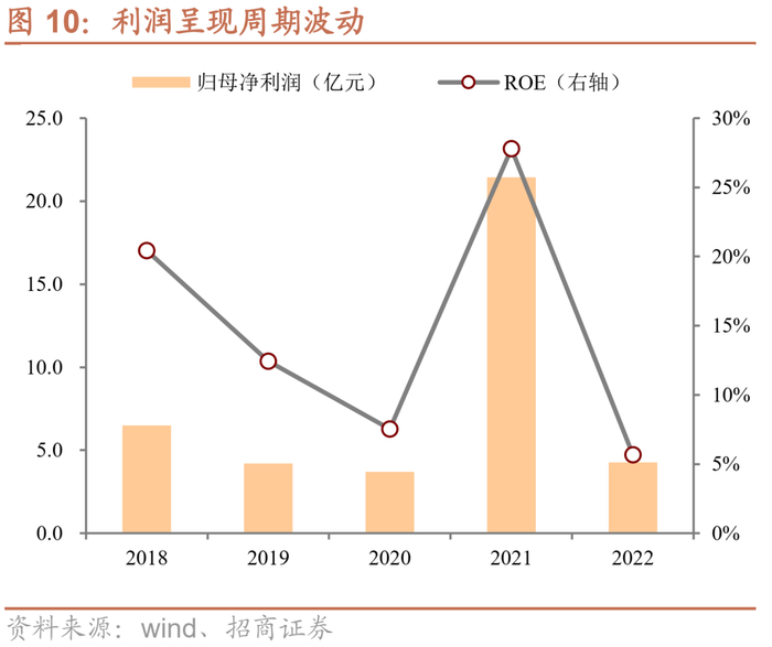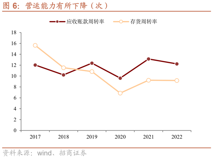 营运能力有所波动。公司存货周转情况与行业景气度高度相关,20年行业景气度较差之时、公司存货周转率一度只有6次,21、22年景气度回升之后,公司存货周转率明显提升、达到将近10次。应收款周转率方面,下游客户回款较快,应收款基本在一个月之内完成周转。