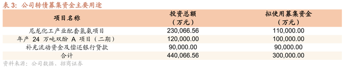 公司本期转债募集资金为30亿元,扣除发行费用后将用于尼龙化工产业配套氢氨项目、年产 24 万吨双酚 A 项目(二期)以及流动资金的补充、偿还银行贷款。
