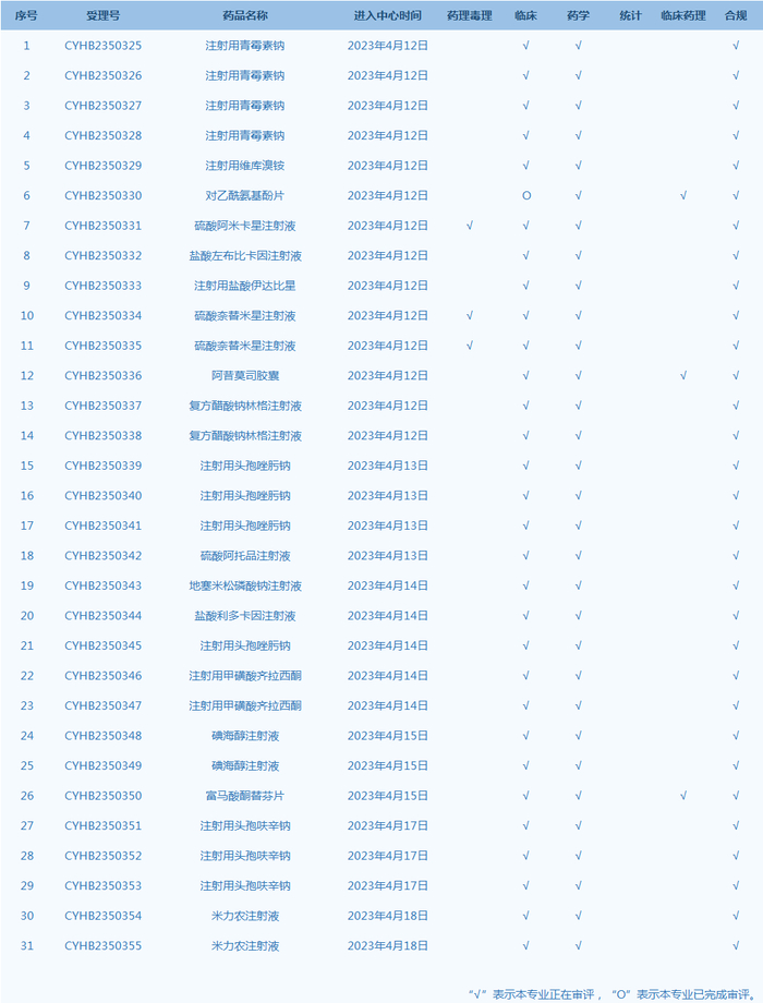 6.CDE网站公示31个仿制药一致性评价任务,涉及注射用青霉素钠等药品。(截至4月18日)