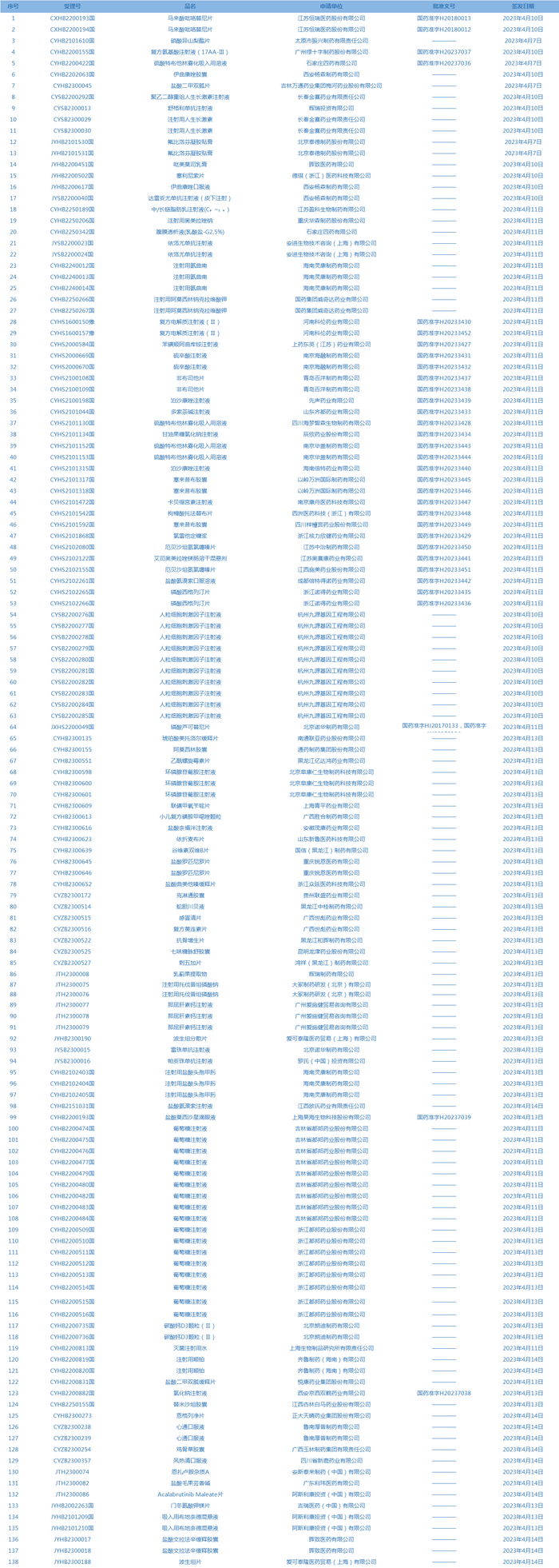 1.国家药监局发布5期药品批准证明文件送达信息,共包括138个受理号,涉及江苏恒瑞医药股份有限公司等企业。(截至4月18日)