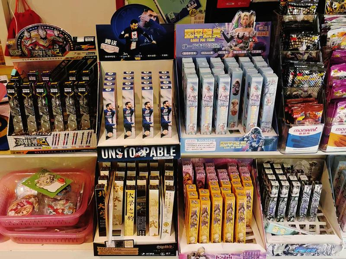 在合肥市绿怡小学附近的几家文具店内,记者刚进门就能看见各类包装精美的文具盲盒摆在货架上,奥特曼、原神等动漫和游戏的元素都能在文具盲盒上看到,“惊喜不断”“抽一份未知的惊喜”等字样也被印在了包装上。