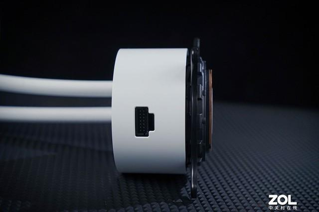 水冷头水管接头的对侧是电源+控制线的插座,可以看见里面有数量颇为可观的插针,这也是NZXT恩杰高端水冷的特色之一。