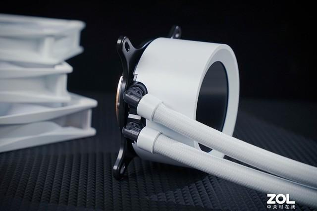 360mm的水冷排布置12排密集的散热鳍片,颇有汽车水箱既视感,拥有较高的散热效率。密集的散热鳍片配合高风量散热风扇有效达到热传导和散热效果。