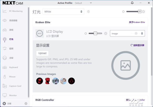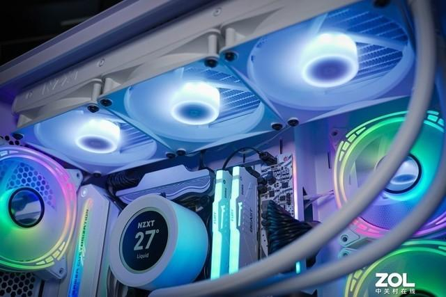 下图是KRAKEN(海妖)ELITE RGB散热器使用白色灯光的效果,显得非常绚丽而又柔和。