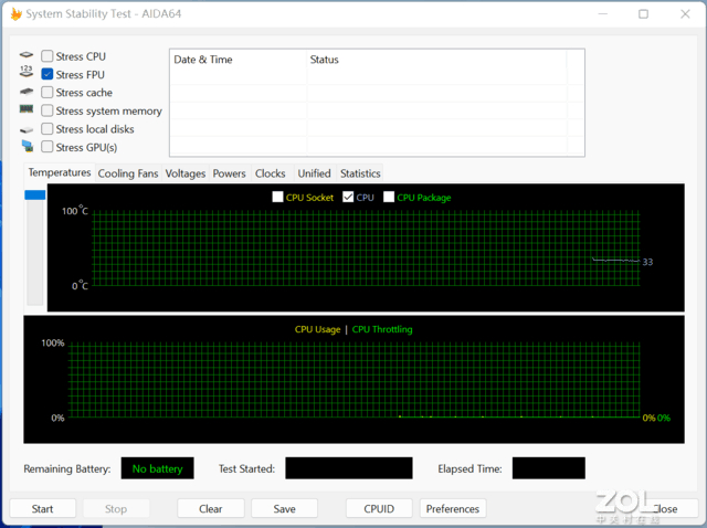 在21℃的室温下,AIDA64显示CPU空载温度稳定在33℃,水冷头显示冷却液温度为27℃。