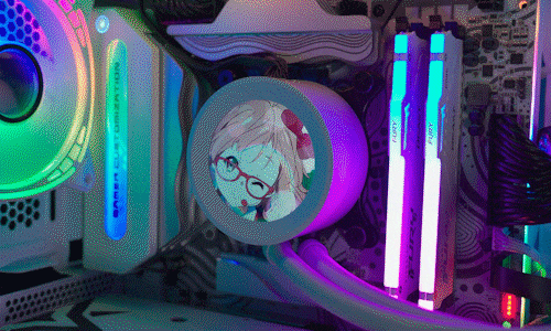 当然,你也可以让老婆们在水冷头上动起来,在工作休闲之余,是不是非常赏心悦目?