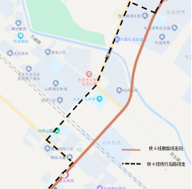 ●快6线线路走向由龙凤大街-龙凤北大街临时调整为龙凤大街-凤阳路-龙永路-龙达路-龙凤北大街,取消站点大庆东站,具体绕行如下图: