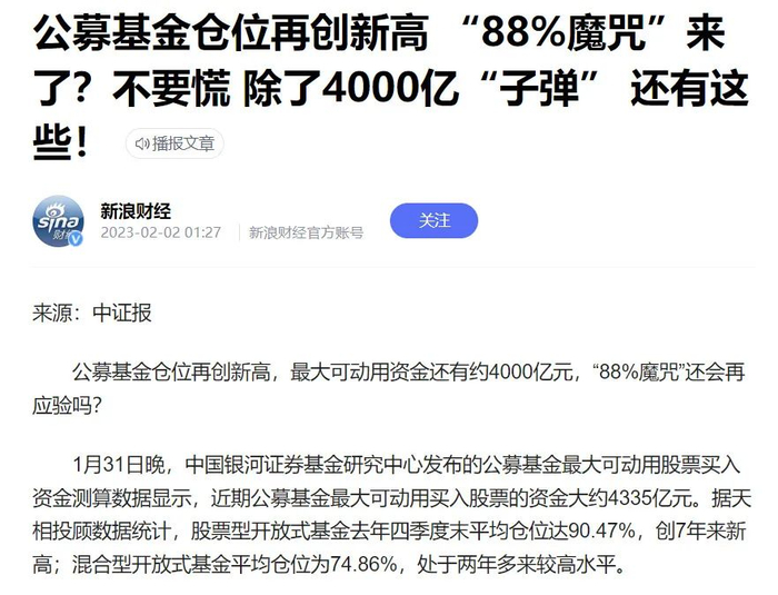 1、为什么在2018年的大熊市以后,2019-2021年顺利走出三年大牛市?其中一个原因我在2月5日写过:2018年末公募基金平均股票仓位为62.61%,较三季末的67.11%进一步下降——在2018年大熊市的基础上,所有公募都在大幅减仓杀跌,杀到近10年的历史最低仓位;