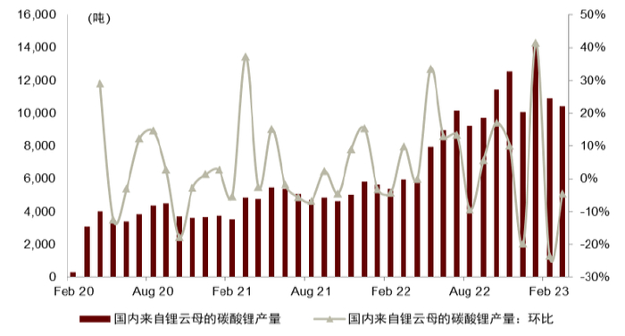 图表4:价格下跌导致国内锂云母碳酸锂产量减少