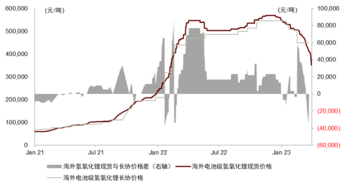 图表22:海外氢氧化锂长协价格大幅高于现货