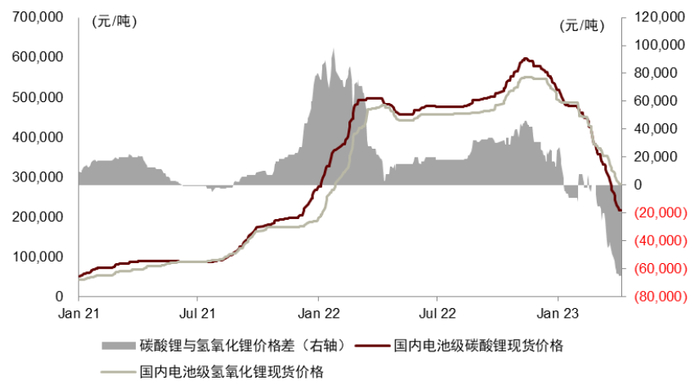图表19:国内氢氧化锂现货价格大幅高于碳酸锂