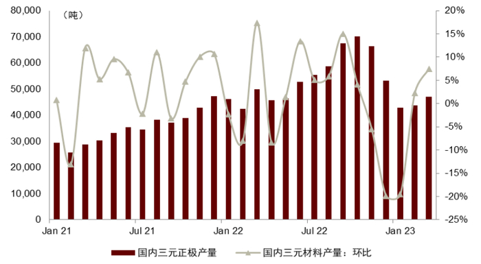 图表12:国内三元正极材料产量及环比