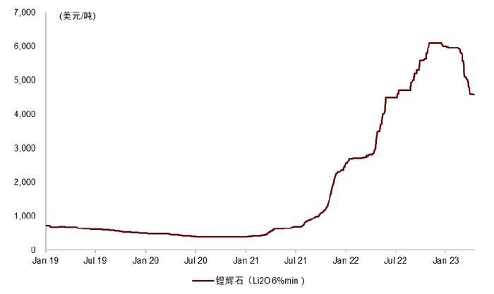 图表2:锂辉石精矿价格跟随锂盐回落
