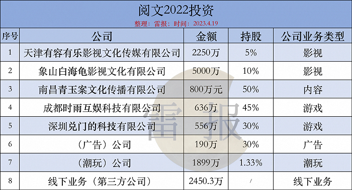2022,阅文花上亿元投资8家公司,晋江去年收入13亿
