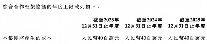同时,双方合作协议时长为未来3年,同时2023-2025这三年的成本上限均为4000万元。三年累积为1.2亿。而2020、2021、及2022前三个季度,双方也产生了1.17亿元的交易额。