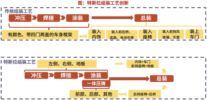 结构性概念是一个好概念。它更简单,效率更高。结构上加载电池,并将电池组作为车辆的底板,同时在未来的项目中迭代设计,使这种A级架构更接近于B级执行。而对于特斯拉来说,这种结构不仅体现在电池组,也同样体现在组装工艺方面。