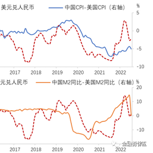 图1:人民币汇率、中美通胀与货币供应量