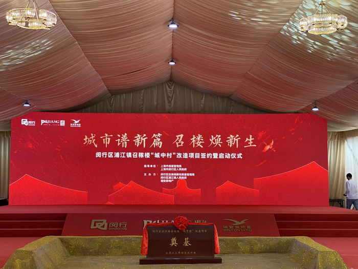 4月20日,上海市闵行区浦江镇召稼楼“城中村”改造项目签约暨启动仪式在召稼楼古镇举行,浦江镇与瑞安房地产签署项目合作合同。
