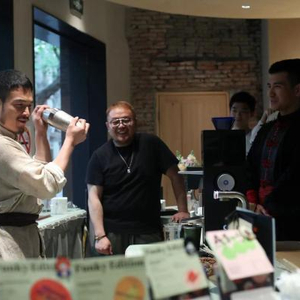 奉阳把自己调出来的一杯“红妆”递给一位顾客。“我希望这部戏给观众的感觉,就像这杯红高粱特调,一开始很猛烈,中间可能有一些苦涩,最后又有超越了苦与乐的回味。”