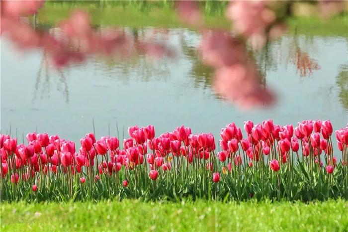 石竹、蓝香芥、紫苏兰、百合、马鞭草、百日菊、格桑花、醉蝶花等花卉与郁金香形成互补,共同组成大地景观,形成了月月有震撼、季季有主题的“四季花海”。