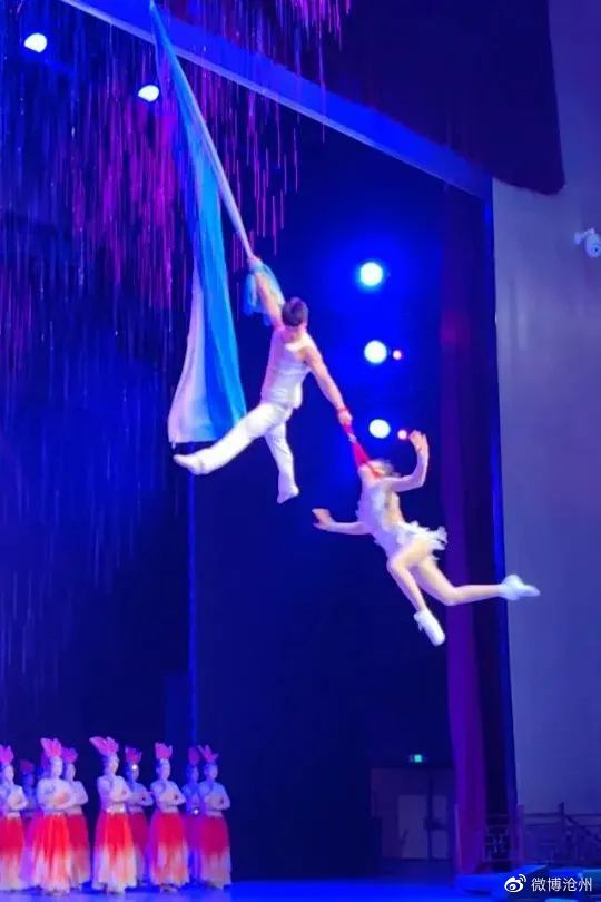 吴桥江湖大剧院可容纳1600人,集水、火、升降、旋转等为一体的多功能水舞台、冰舞台和各类常规舞台,安装有高标准舞台灯光及配套设施,整体构造为外圆内方,体现了中国传统文化刚柔并济、和谐共生。