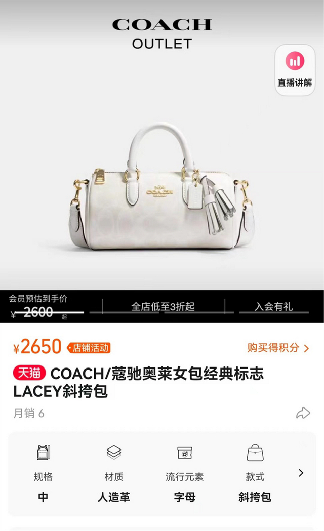 王女士介绍,2023年3月3日,她在淘宝“COACH官方outlet旗舰店”花了2550元购买了一款蔻驰奥莱女包经典标志LACEY斜挎包。但没想到,一个月不到,包扣部位就出现了五金发黑的情况。