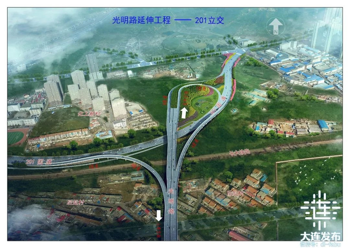 是光明路的北侧终点,与201国道相连,去往后盐高速以及金州方向。