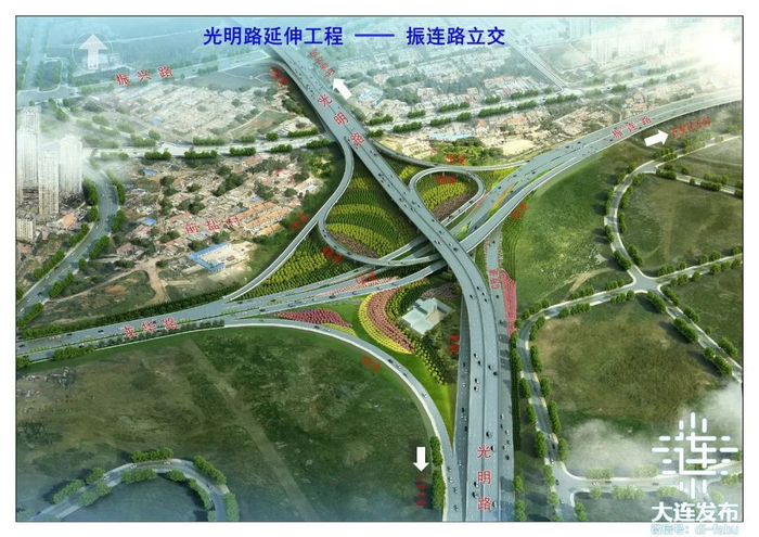 与振连路、龙华路相连接,泉水北部居民可直接进入光明路、振连路,为半互通立交龙华路车辆不能去往光明路出市方向。
