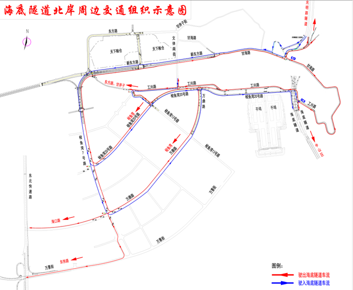 海底隧道开通,交通需求和流量逐步稳定后,公安交警部门将对周边道路交通组织措施进一步予以调整优化。