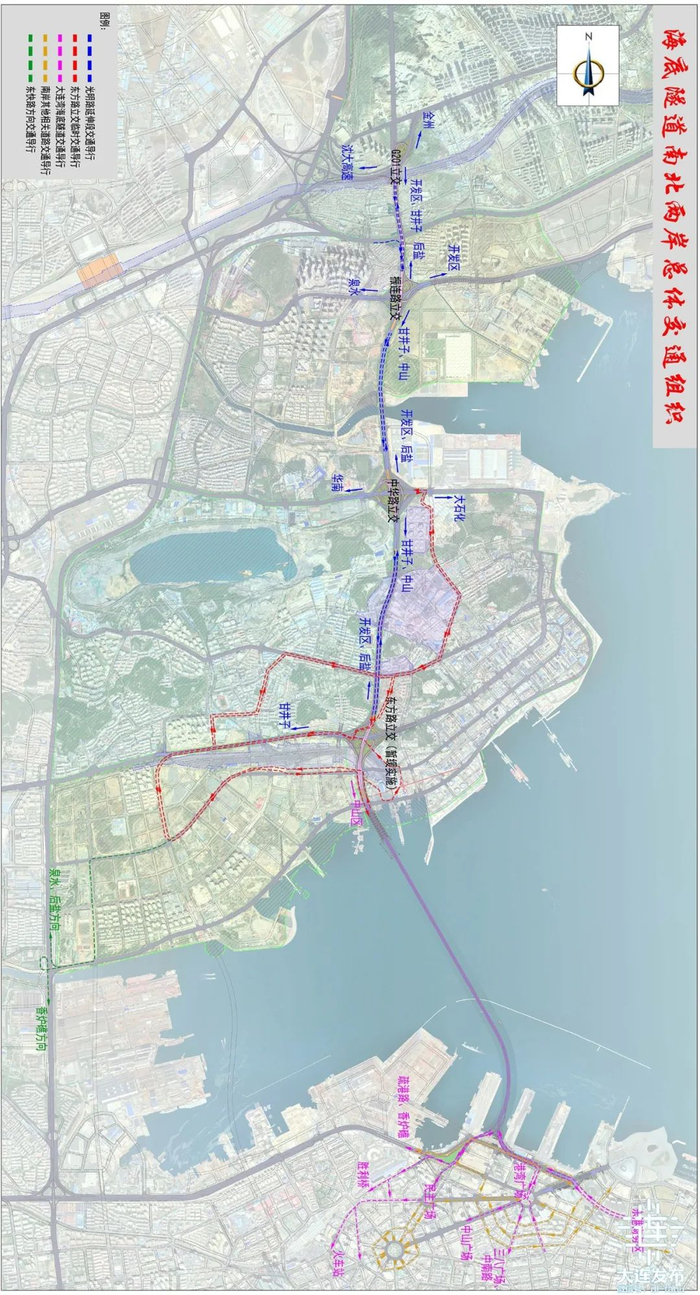 ◆ 老甘井子区域:海底隧道北出入口-左转-工兴路-文体街(限高2.5米)-甘海路,海底隧道北出入口-左转-工兴路-20号路-7号路-新东方路-天下粮仓东侧规划路-东方路;