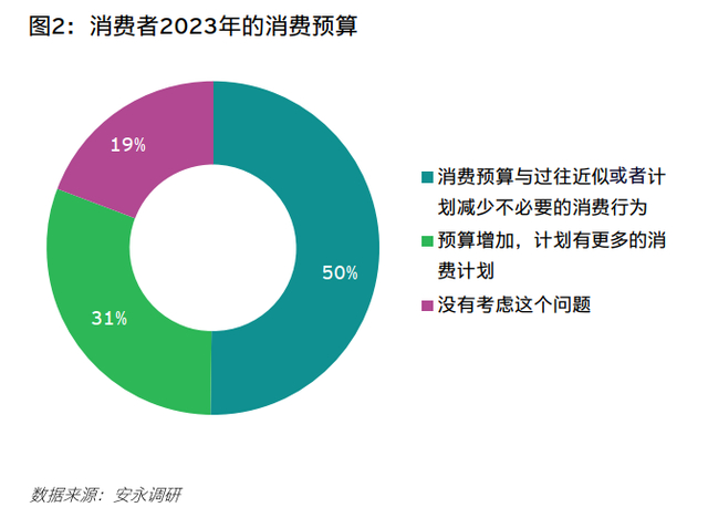 根据安永调研数据显示(图2),31%的受访者表示会在2023年增加消费预算,有更多的消费计划,而50%的受访者表示在2023年的消费预算与过往近似或者计划减少不必要的消费行为。由此可见,新春期间的报复性消费更多的为补偿性消费,消费者此前被耽误的消费计划随着疫情管控的放开得以落地施行,但消费者的消费动力亦在逐渐地降低,报复性消费再次发生的可能性较小。因此,商家依然需要采取更多更有效的营销策略以吸引消费者。