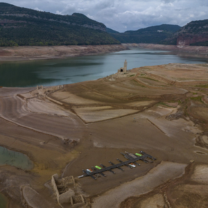 受极端干旱影响,加泰罗尼亚的萨乌(Sau)水库水位降至1990年以来最低,导致20世纪60年代因建大坝而被淹没的San Roman de Sau村庄“重现天日”。