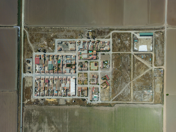 当地时间4月15日,西班牙赫雷斯-德拉弗龙特拉,村庄鸟瞰图。由于极端热浪和随之而来的几年干旱,农业产量大幅下降,西班牙安达卢西亚地区的产量下降了一半以上。