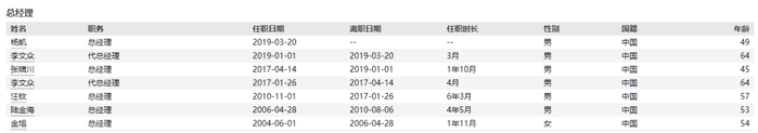 汪钦离职后,2017年4月,张啸川任总经理,2019年1月离任;2019年3月,昔日的“四小龙”之一杨凯任总经理。人事交替期间,董事长李文龙曾两次短暂代任总经理。