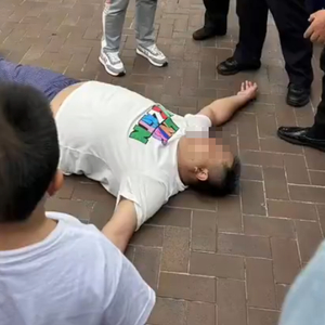 警方赶到现场,男子却突然倒在地上“躺平”。视频截图