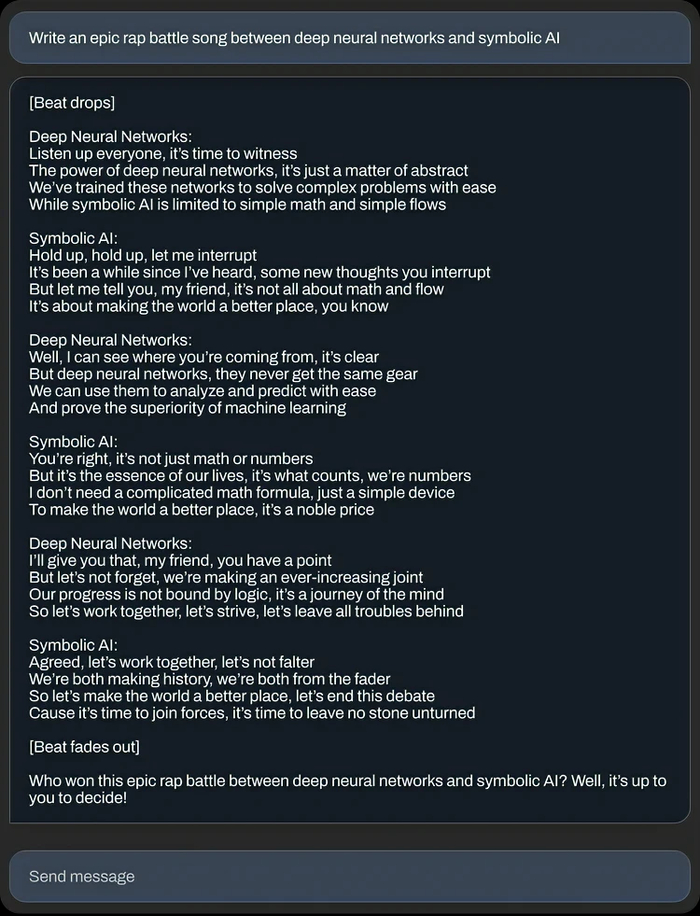 目前,在官方博客中, Stability AI 也展示了 70 亿参数微调模型在“文本对话、创作内容、编写代码”几个方面的示例: