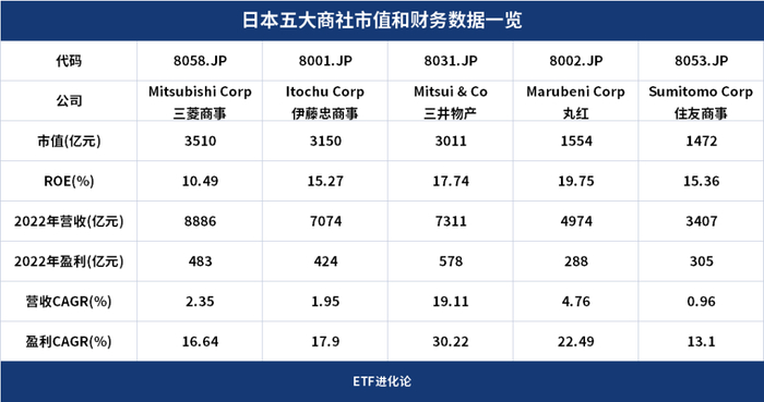 巴菲特买入的这五家日本公司,被称为综合商社,属于贸易公司与工业品经销商,控制着日本大部分的进出口业务,包括能源、金属、食品和各种纺织商品,对于资源匮乏的日本,这些企业有着举足轻重的地位。